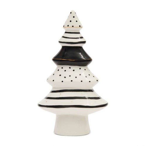 Ein wunderschöner schwarz-weisser Weihnachtsbaum mit goldenen Akzenten und dem Schriftzug „Merry Christmas“.Da er handbemalt ist - jedes Stück ein UNIKAT.